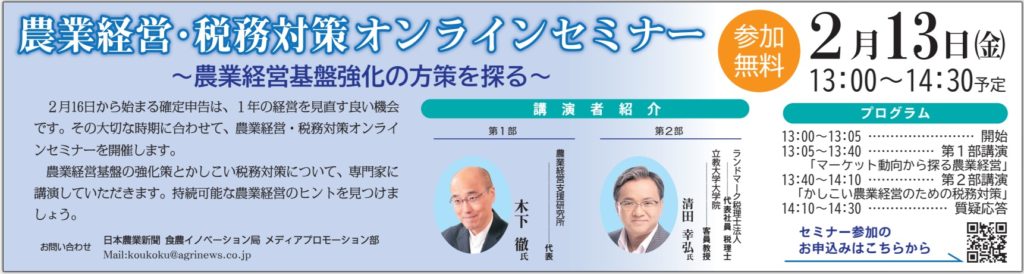 日本農業新聞主催 オンラインセミナー開催